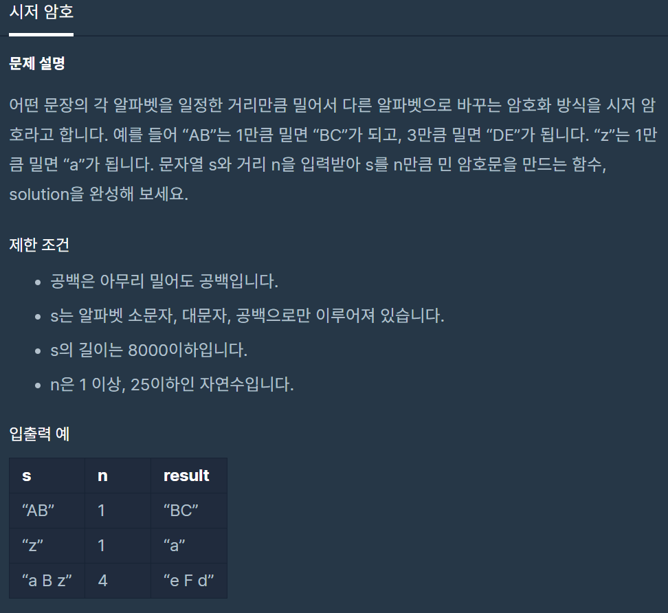 코딩테스트 연습 - 시저 암호 | 프로그래머스