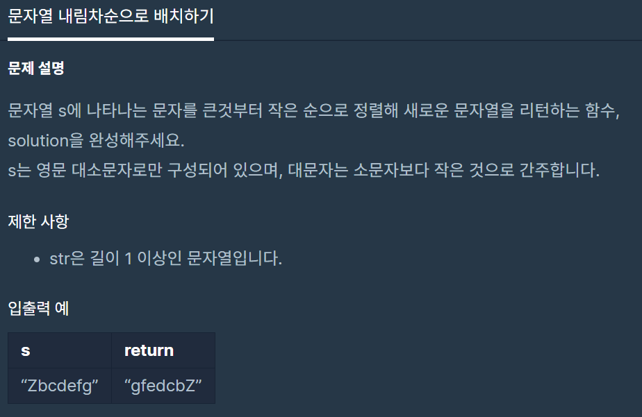 코딩테스트 연습 - 문자열 내림차순으로 배치하기 | 프로그래머스