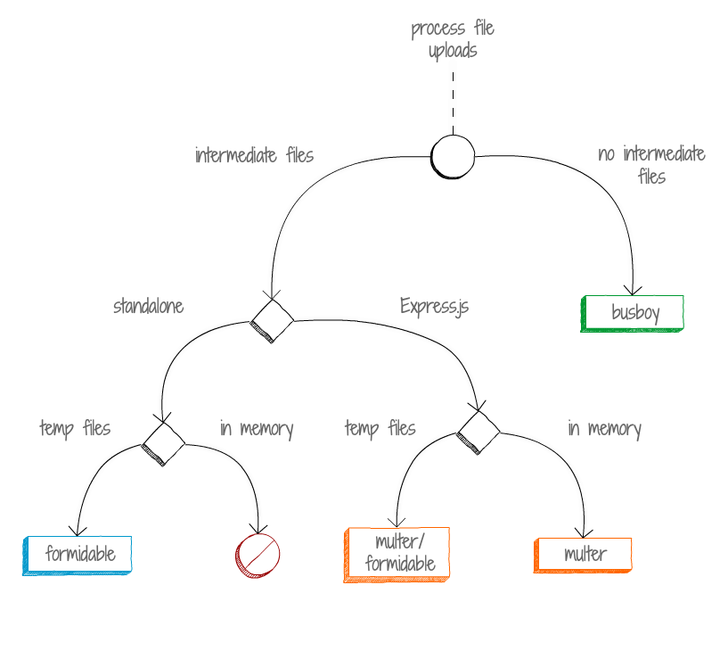 Choose between Formidable, Busboy, Multer and Multiparty for processing file uploads
